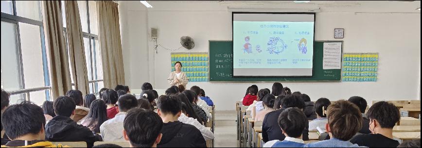 图1.2021级护本02班辅导员汪丹珂老师在开展心理健康教育主题班会