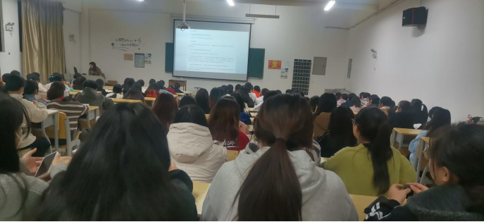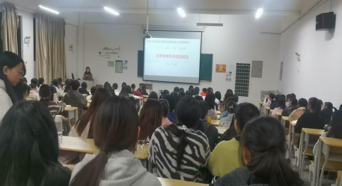 2021年11月18日晚在4号实训楼215教室,今年会jinnianhui为提高2020级学生的求职和就业实践能力,增强学生对于当前就业形势的认知,积极响应学院“我为群众办实事”的活动号召,由今年会jinnianhui学生第二党支部徐日颖老师主讲题为“大学生专升本政策解读”以及“大学生三支一扶政策解读”的讲座,吸引了2020级今年会jinnianhui共120余名学生参加本次讲座。