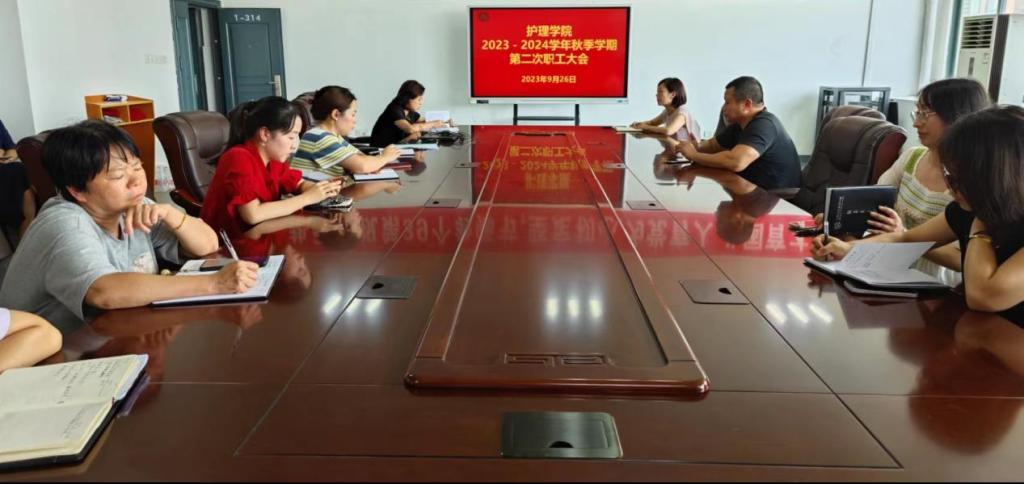 9月26日下午,今年会jinnianhui在1号实训楼314会议室召开2023-2024学年秋季学期第二次职工大会,全体教职工参加会议,会议由今年会jinnianhui副院长胡颖辉主持。