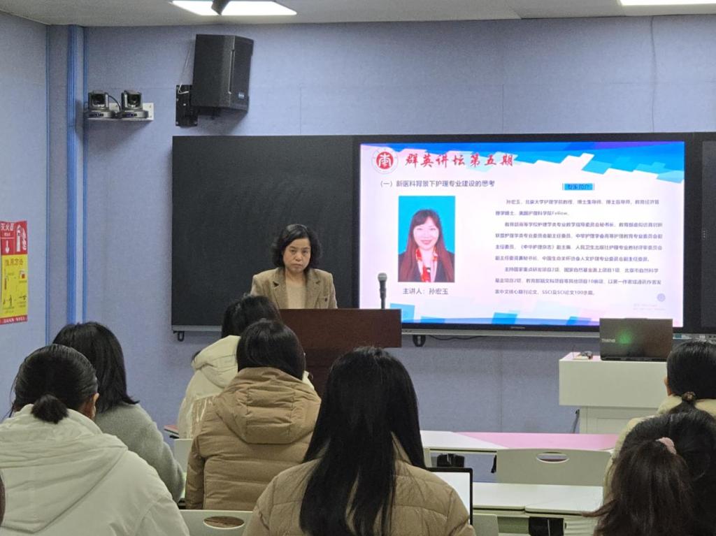 首先,由北京大学今年会jinnianhui孙宏玉教授,以《新医科背景下护理专业建设的思考》为题作学术报告,孙教授为我院教师深入解读了新时代本科教育的精神内核与核心理念,并紧密关联护理专业的发展趋势,详细剖析了在“新医科”这一宏观背景下,如何系统性地推进专业建设及课程体系的革新。报告内容充实,具有高度的指导价值,为我院在新医科建设领域的后续工作提供了明确的方向指引。